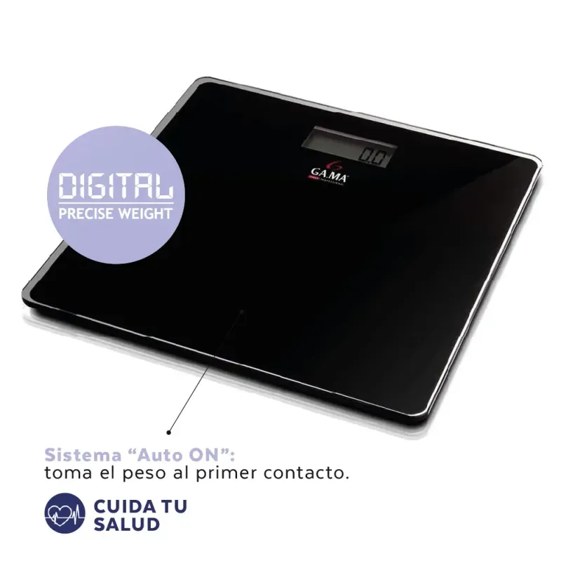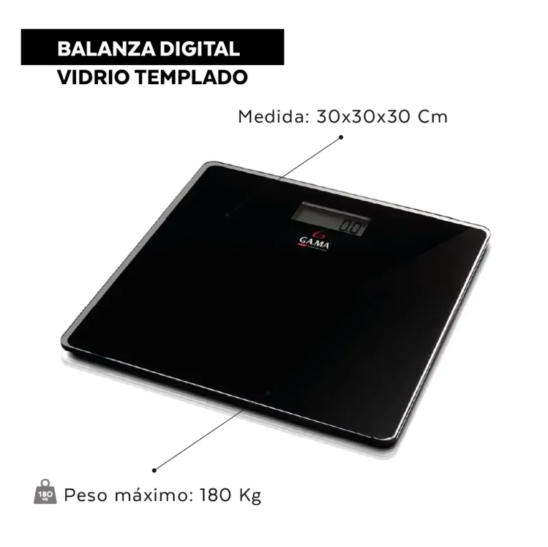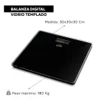 Balanza digital de vidrio templado con apagado automático. Medición máxima 150kg.No incluye pilas.