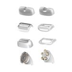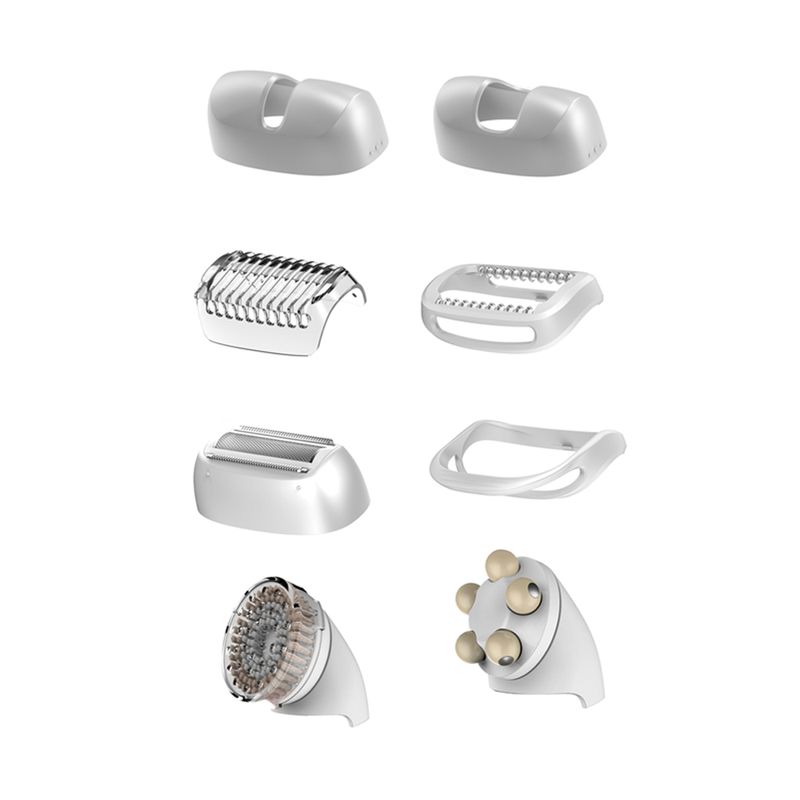 Cuenta con 6 accesorios: cabezal facial, cabezal zonas sensibles, de afeitado, estiramiento de piel, peine recortador y cabezal de masaje.